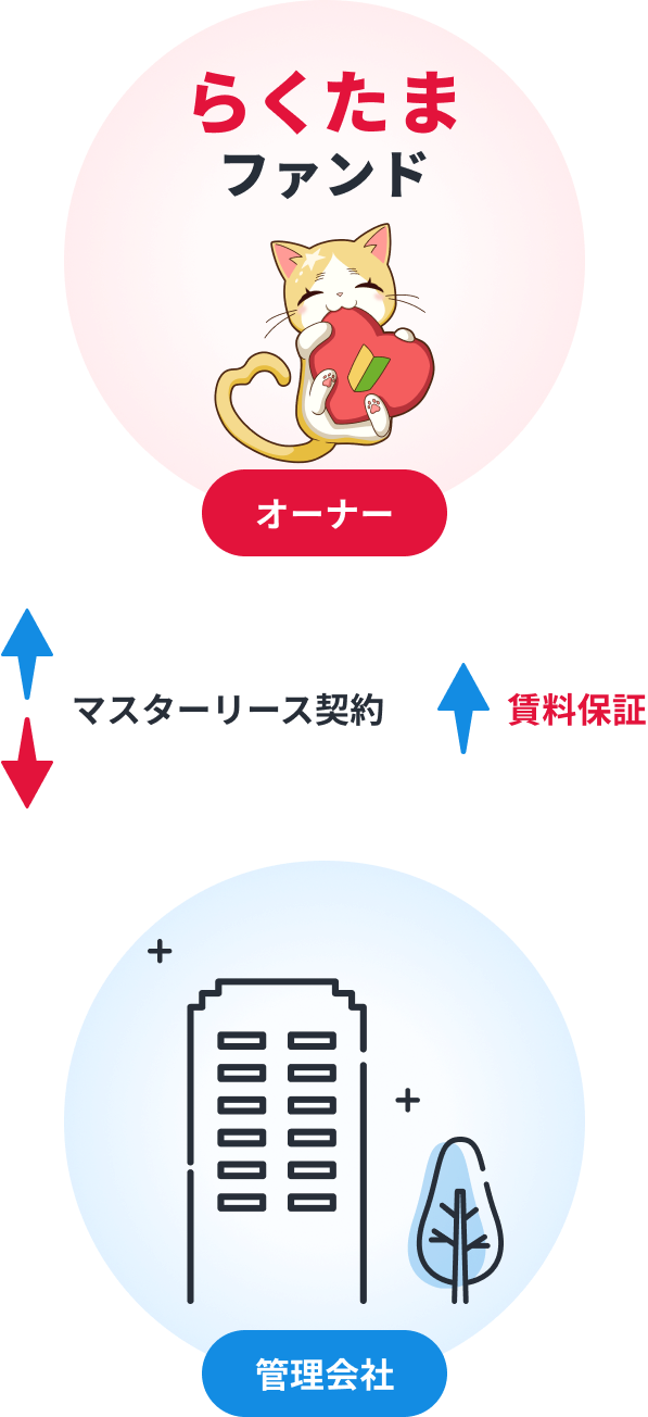 賃料が発生するインカム型ファンドでは、賃料滞納や空室リスクを回避するため、 管理会社とマスターリース契約(賃料保証型)を締結します。 毎月の賃料が保証されるため、入居テナントが賃料滞納・解約した場合でも、安定した分配金を期待することができます。(ファンドによりマスターリース方式が採用されない場合があります。)