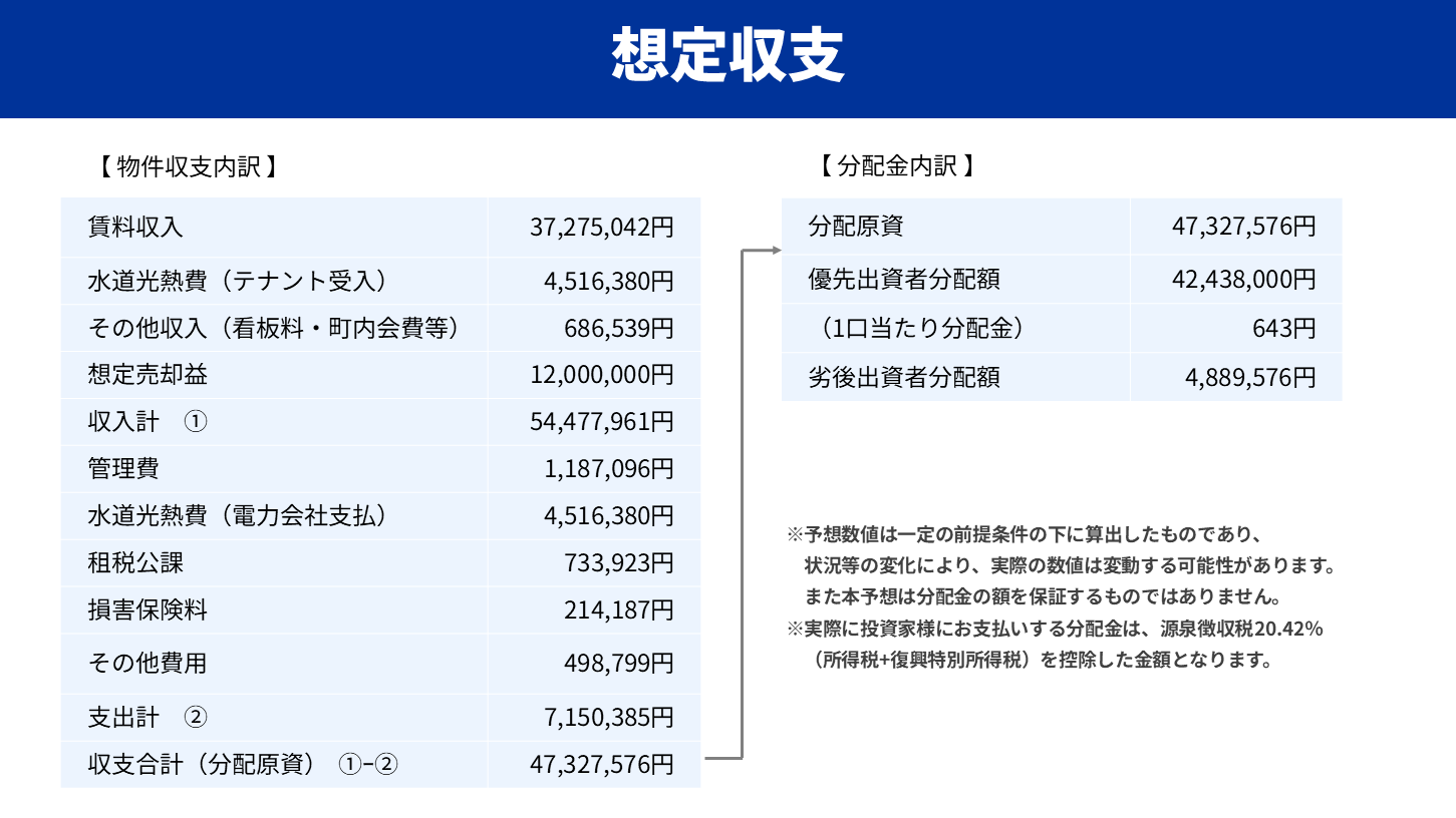 より適切な情報開示を行うため、上記項目は賃料収入から切り分けて別表記とし、募集画面の想定収支スライドを修正いたしました。