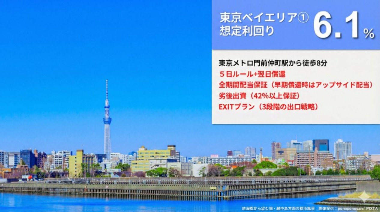 【✅ 対象ファンド】今月末ごろに早期償還となる見通しの対象は、らくたま23号(東京ベイエリア①)です☺️