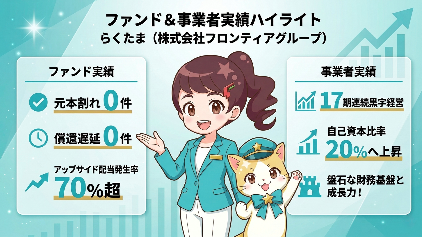 ・償還遅延 0件・ファンド延長0件・元本割れ 0件・応募率 435%・劣後出資比率 36%・17期連続黒字経営・自己資本比率 20%へ上昇